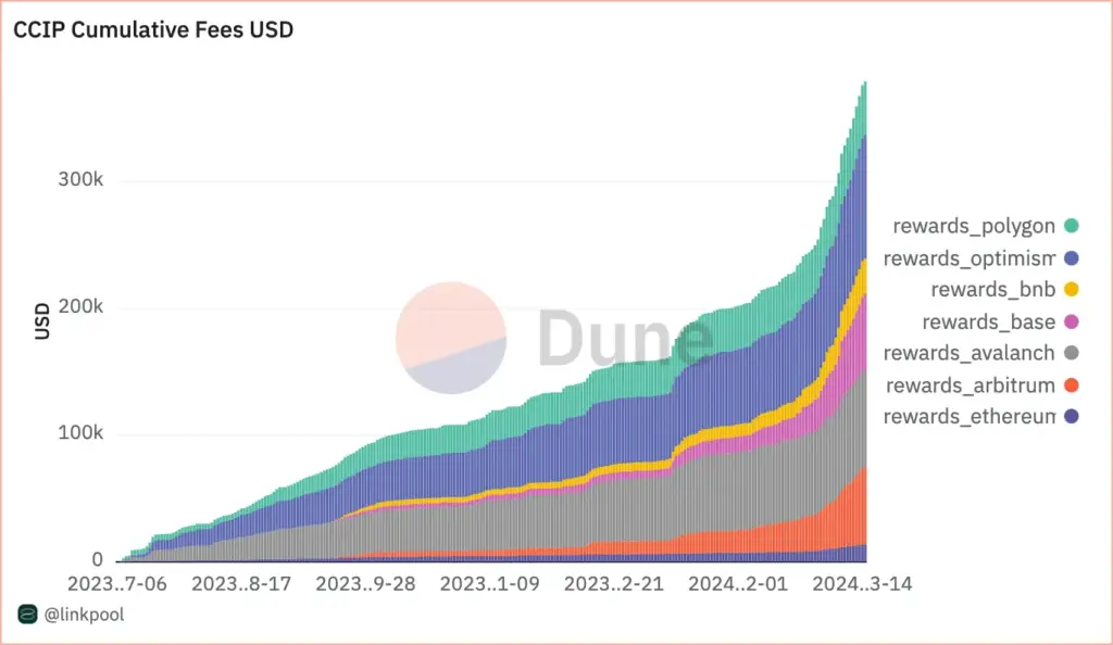 Chainlink CCIP Cumulative Fees. Source: Dune